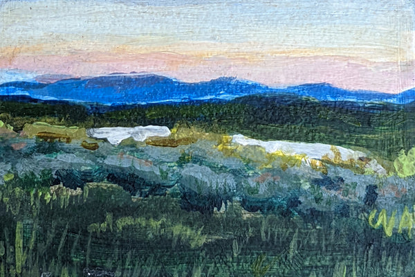 This painting is one from a collection of 6 others inspired by a sunrise hike I went on this summer with several teenage girls from our church group. We were at girls camp and hiked to the top of the mountain early in the morning, and waited for the sunrise to come. As we admired God's beautiful creations in the mountains at dawn, our group came up with different analogies of Jesus and the sunrise. It was a spiritually strengthening experience. This specific spot was right before dawn when the surrounding cool colors had such a beautiful contrast against the pink horizon.