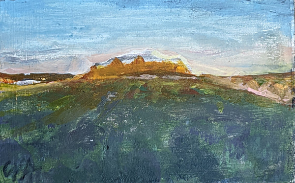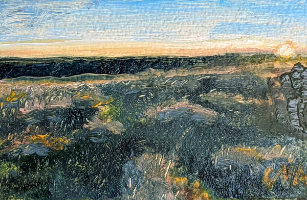 This painting is one from a collection of 6 others inspired by a sunrise hike I went on this summer with several teenage girls from our church group. We were at girls camp and hiked to the top of the mountain early in the morning, and waited for the sunrise to come. As we admired God's beautiful creations in the mountains at dawn, our group came up with different analogies of Jesus and the sunrise. It was a spiritually strengthening experience. I recommend this exercise, as there are many symbolic truths that can be found when pondering this topic. This is the moment I noticed how the growth off the trail that otherwise would have seemed mundane was glowing from the first rays that welcomed us that morning.