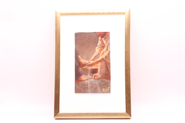 Artist Statement: Jesus, knowing that his hour was come that he should depart out of this world unto the Father, rose from supper, and laid aside his garments; and took a towel, and girded himself. After that he poureth water into a bason, and began to wash the disciples’ feet, and to wipe them with the towel wherewith he was girded. (John 13:1–5)