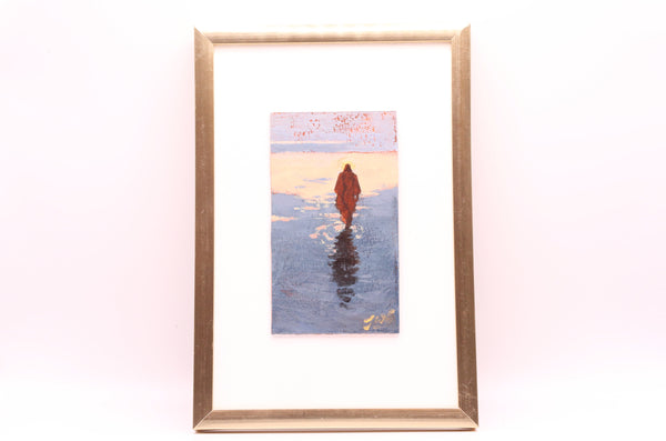Artist Statement: This painting captures a quiet moment of Jesus walking across calm waters—a reminder to me of His gentle strength and peace in the midst of life’s stillness and challenges. Without storms or waves, His presence alone brings comfort and assurance that we are held and never alone. Through this image, I hope to share that same sense of calm and faith, inviting others to feel the quiet power of His love in their own lives.