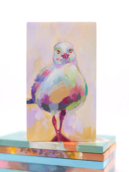 About the Artist: Kristen Preble finds creative inspiration from moments caught in the presence of wildlife. Drawing on these experiences in her studio in Boston, MA, she works in acrylic paint to assign personality to animals through successive layers of color and brush work to create a fun, relatable, and lasting connection.