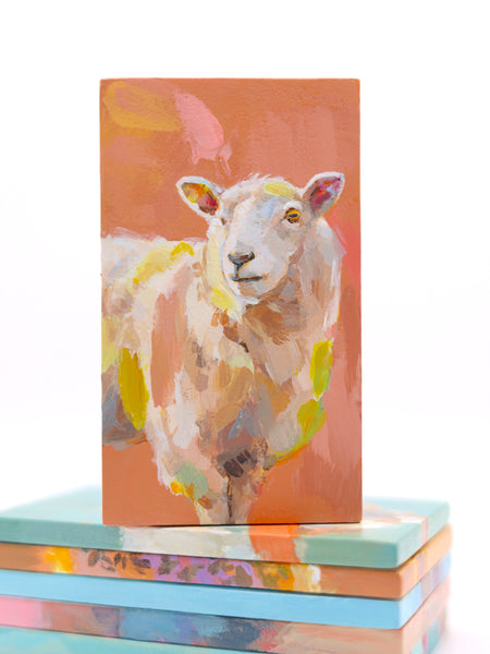 Titles: Mane-ly Lilac, Bison Blues, Vintage Stripes, Sunset Sheep, Smoke Green Sheep, Sleek Silhouette, Feisty Feathers, Sunny Seagull, Pink Piggy, Regal in Teal