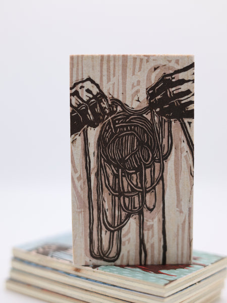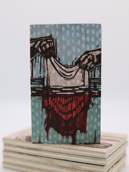 About Artist: Born and raised in the mountains, Kristin Alley Carver is a graduate of the Fine Arts (emphasis in printmaking) and Special Education programs through USU. Motherhood, nature, difficult experiences, and eternal questions inform much of her work. She finds the physicality, rich beauty of mark making, and the surprise of relief printmaking a fulfilling medium to write her story. Art has given her the ability to transform, reveal, and highlight the beautiful and miraculous around her.