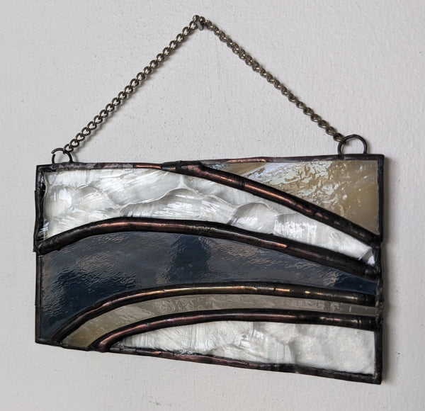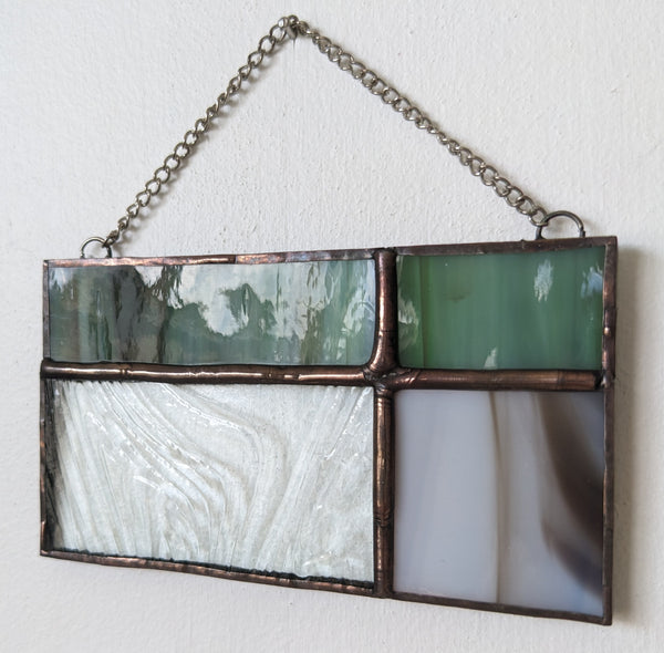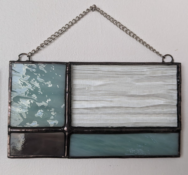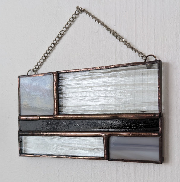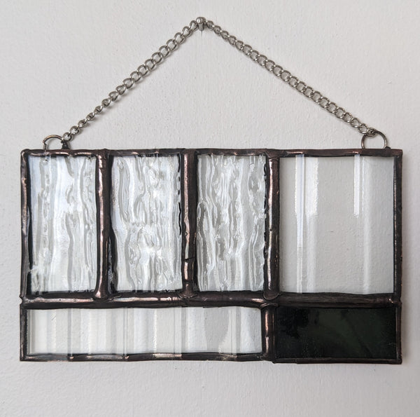 Artist Bio: I make stained glass artwork, often balancing clear textured glass with colorful elements.
