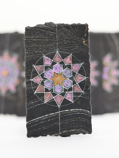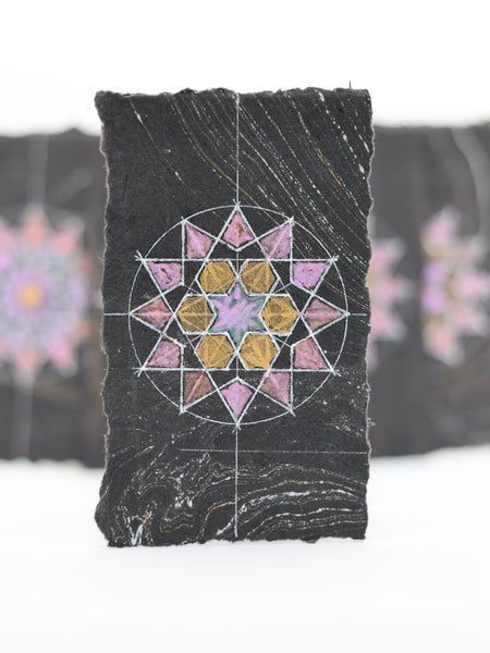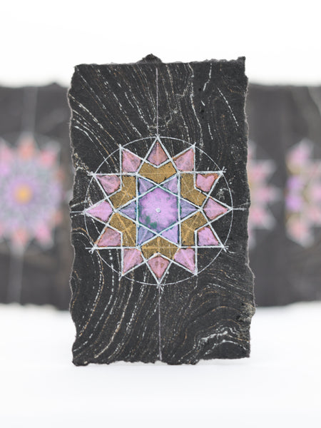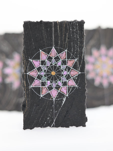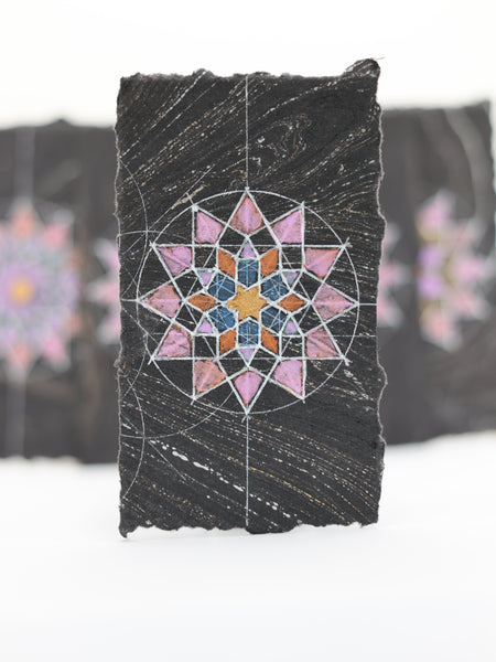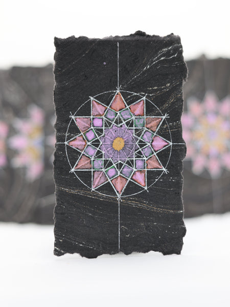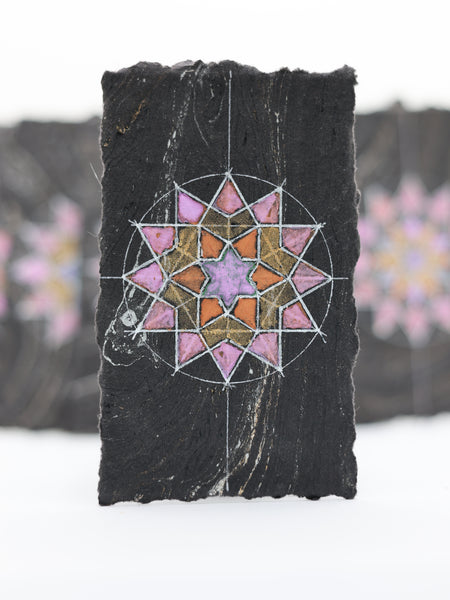 Lisa DeLong received her MA in Art History at Brigham Young University. She studied for her PhD under Professor Keith Critchlow at the Prince's Foundation School of Traditional Arts in London. Her first book Curves: Flowers, Foliates and Flourishes in the Formal Decorative Arts, was published in November 2013 and reviewed in the New York Times. In 2016 she presented a TEDx talk on geometry and education. She was also recently featured in Season 3 of Artful. Lisa is now Head of the Open Programme at the School of Traditional Arts, also designing and conducting educational workshops internationally in places like Azerbaijan, Abu Dhabi, Pakistan, Malaysia, China, Pakistan, and Saudi Arabia for the School's Outreach Programme. In her paintings, Lisa investigates the beauty found in the conversation between order and the unexpected, chaos and cosmos. Both the patterns and the raw materials of her paintings are informed by her travels and research with the School of Traditional Arts.