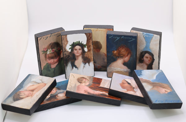 Titles: Dreamer, A Good Book, Composing, The Crown, Afternoon Tea, Yellow Dress, Patience, Peace, Grace, Victory