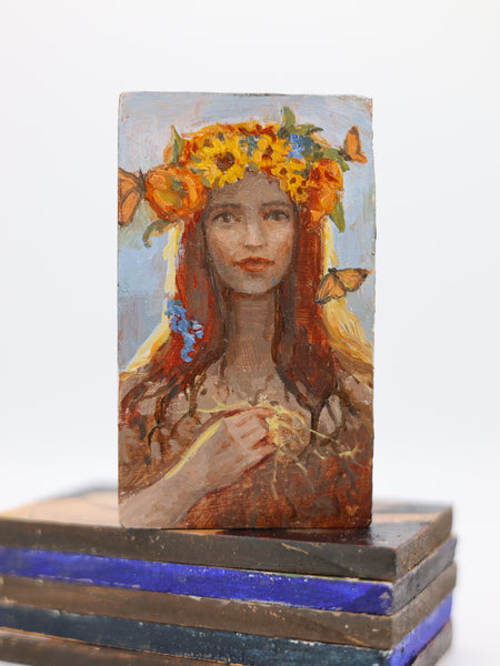 Growing Devotion: This painting is my visual representation of a series of questions. What ideas deserve to be planted and given a place in my heart? What words have taken root and are they bringing forth the most beautiful flowers? What values are worthy of my devotion? Which ideals will cause me to undergo metamorphosis? Like all good questions, there are many beautiful answers.