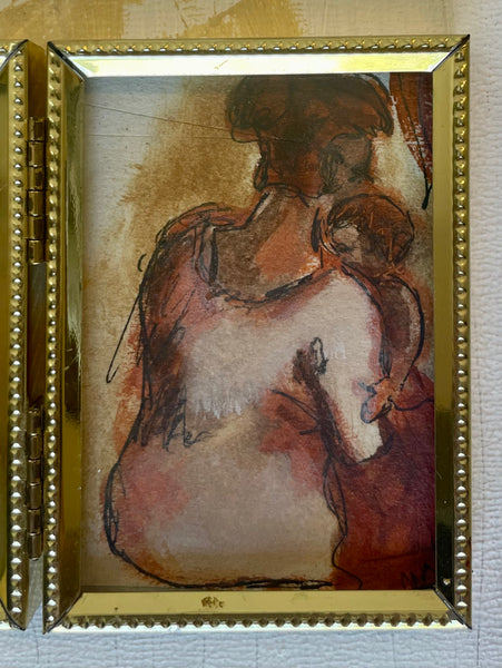 About the Artwork: This framing is this work is meant to bring to mind a triptych, which is a set of 3 paintings mean to be used as an altarpiece.