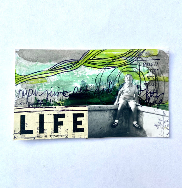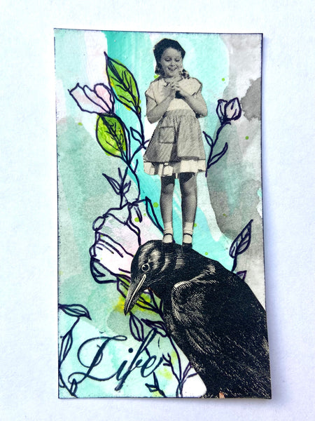 Medium: Mixed media- acrylic, watercolor and inks with vintage photography.