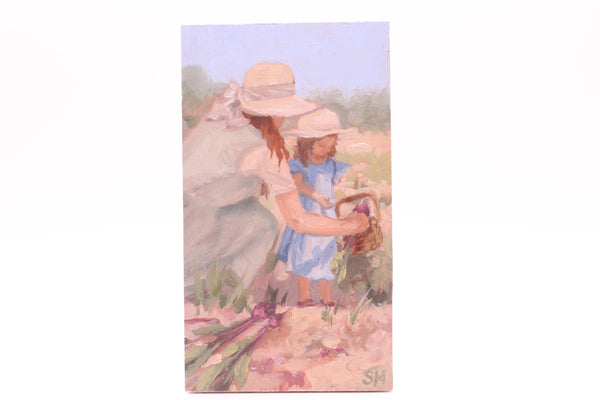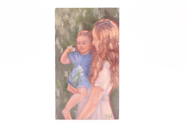 Artist Bio: Sage Hastriter is a mother of three young children and an artist devoted to capturing the beauty of motherhood. Becoming a mother has been the most transformative experience of her life and has inspired her to keep creating amid the chaos of raising a family. Her work seeks to honor the sacred, fleeting moments she experiences. Through themes of tenderness, safety, connection, and light, she creates pieces that feel both intimate and timeless. Her inspiration is drawn from personal experience, faith, nature, and quiet everyday moments with her children.