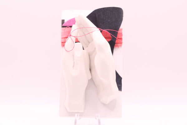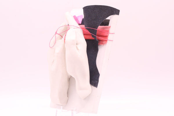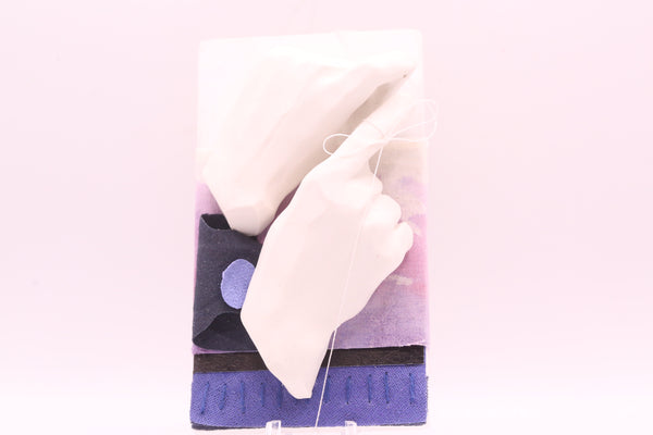 Medium: Assemblage of paper, fabric, acrylic paint, thread, and clay on board