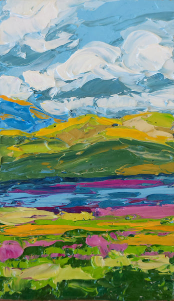 Sydney began focusing on an art career in 2017. She loves having a studio inside her home to paint and raise her three children at the same time. Sydney was born in Utah and is inspired by all of the mountains, fields, and wildflowers throughout this beautiful state. She loves thick, impasto texture, bright colors, and painting with palette knives.