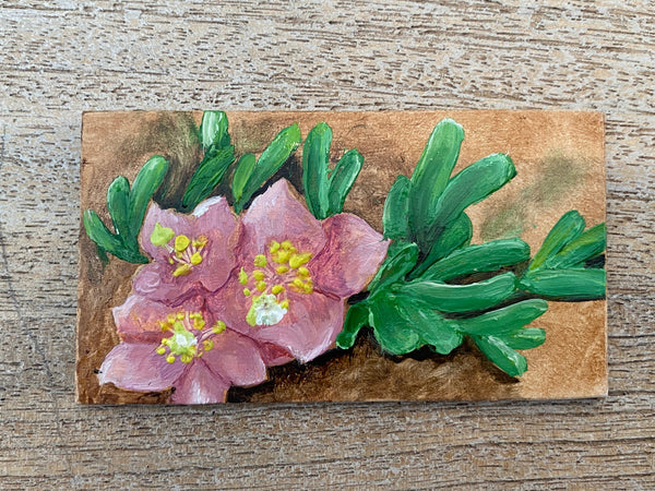Navajo Succulent (Oil on gesso board) - After monsoon rains this ring succulent blossoms in the Arizona desert on my Navajo homeland. It is a pleasant sight among the arid desert sands.
