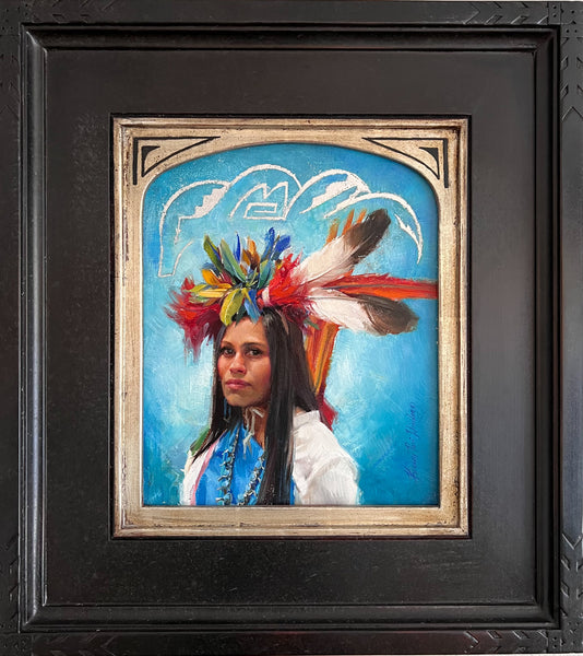 About the Artwork: Dressed as a rainbow dancer from the Santa Clara Tewa Pueblo, this self-portrait shows the side of me that is rarely seen but is the driving force in the creation of my art. The side of me that I am continually exploring.