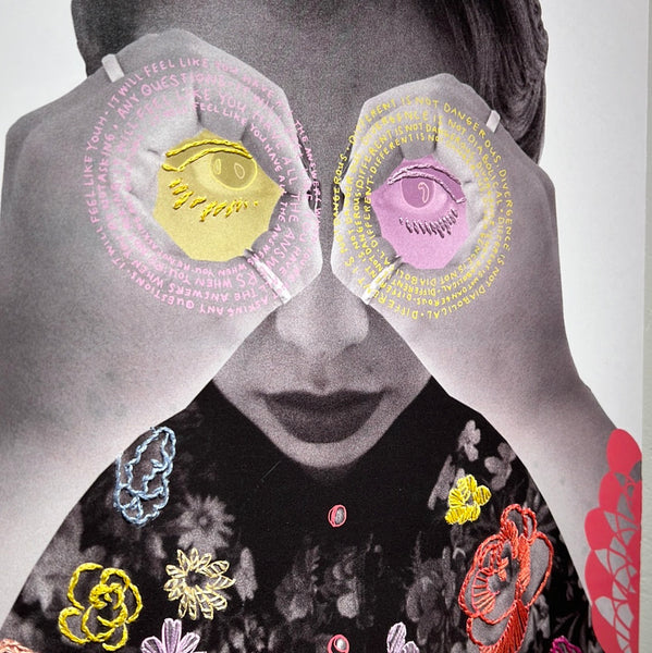 About the Artist: Born and raised in Orem, Utah to Mexican immigrant parents, Ruth (she/her) is a partnered mother of two (one deceased, one living) who worked as a hairstylist for 7 years before leaving the beauty industry to work for Utah Educational Equity Coalition. Ruth is passionate about anti-bias/anti-racism work and she explores related themes through digital collage and found poetry.