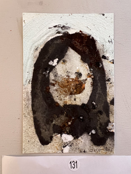Each of these pieces is made from acrylic paint, iron finish, and oxidizer. Approximately 3 x 4.5"