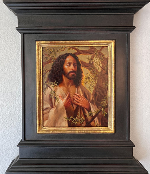 An unspoken but profound part of Christ suffering is the role of Heavenly Mother. I included her in this painting. Her as the tree, her symbol from age immemorial. Her as a grieving mother wishing she could hold her child close enough to wash his pain away with her tears.